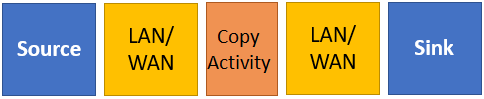 As shown in the diagram above, the Copy Activity simply copies the data from the Source and replicates the copied data to the Sink using the underlying networks (LAN/WAN) on each side.